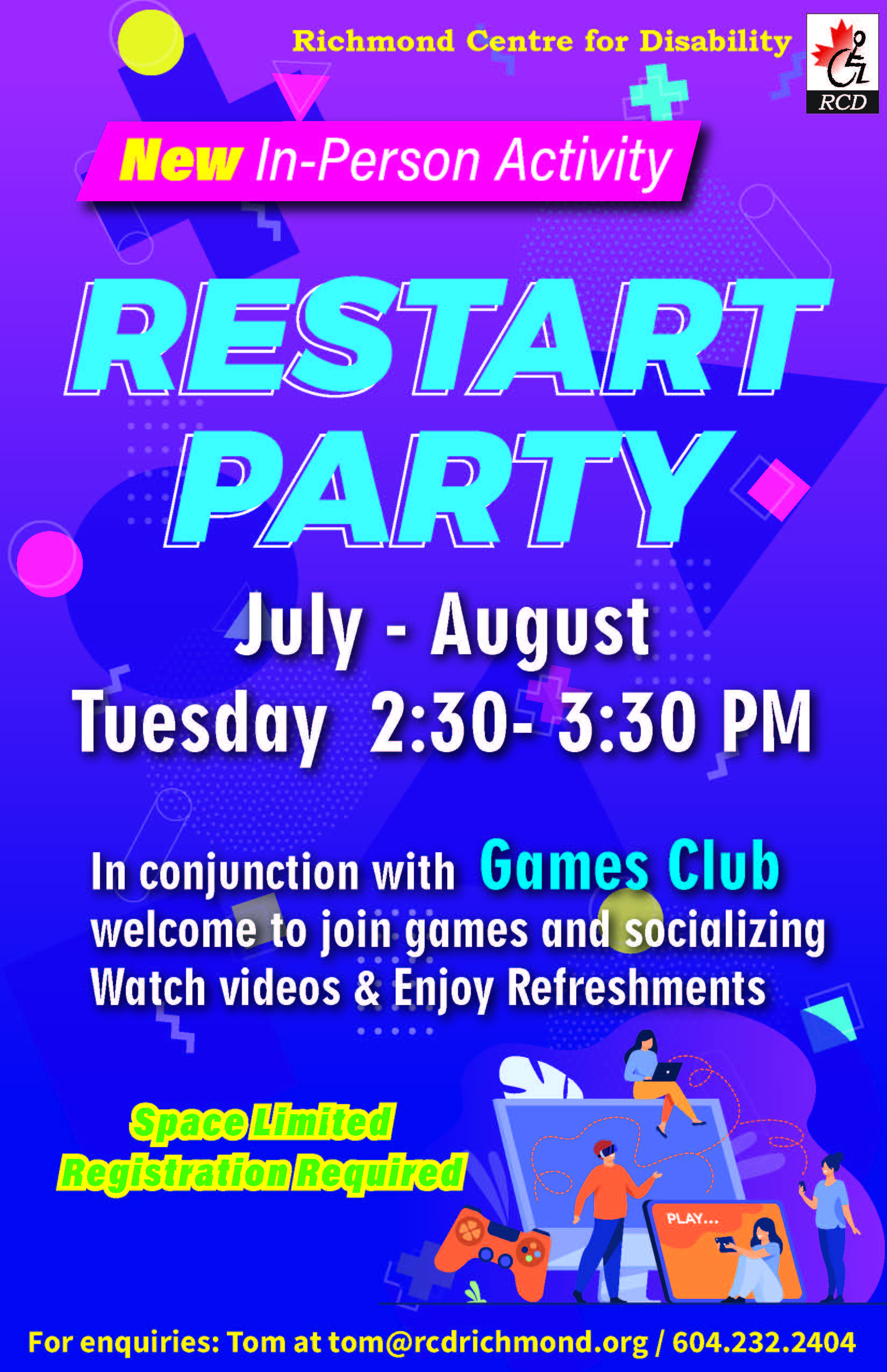 For enquiries: Tom at tom@rcdrichmond.org / 604.232.2404